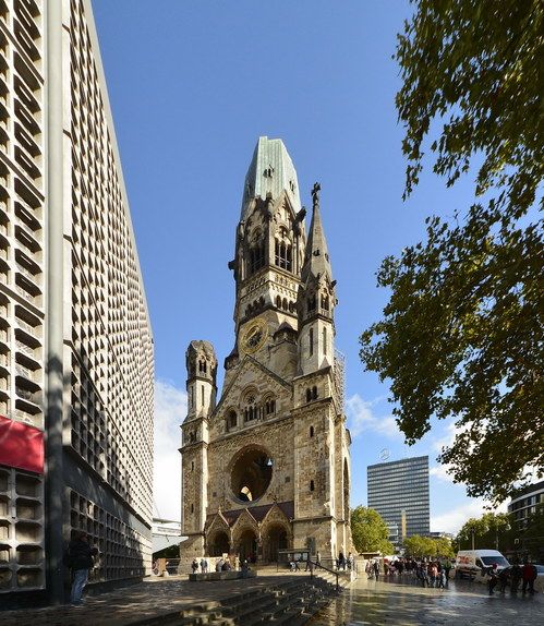 Kaiser Wilhelm Church in Berlin, bombed out during WW2, left as a memorial