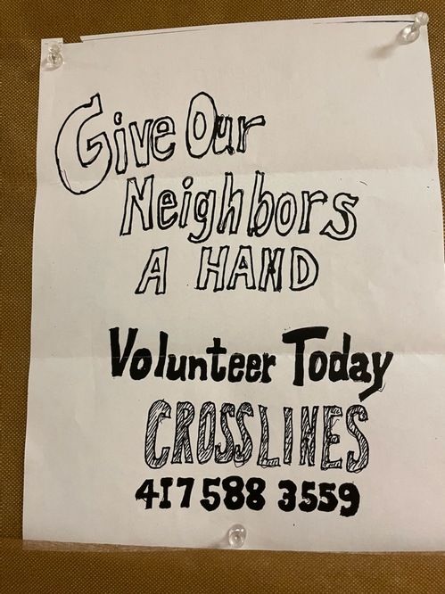 Crosslines can always use extra hands for a variety of jobs. Extra hands free Viola and Melissa Blankenship, who manage Crosslines, to see to tasks that they haven’t been able to because of the day to day needs at Crosslines that must be met. So, if you have been thinking about volunteering, but just need a sign.